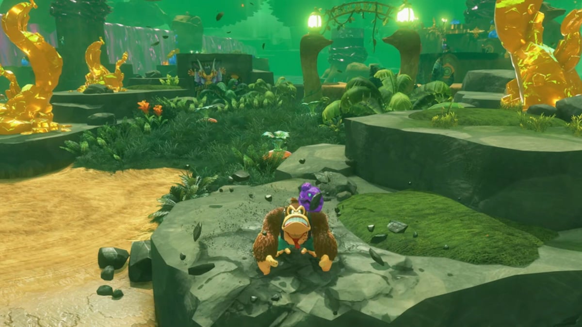 At its core, Bananza revolves around a brilliant concept: fully destructible environments. Every wall, floor, and boulder can be smashed, ripped, or hurled by DK, and that simple mechanic fuels the game’s creativity. Levels, called “layers,” are sprawling playgrounds where breaking terrain is both satisfying and strategic. Sometimes you’re clearing a path to uncover secrets, other times you’re chaining combos by ripping up a stone, tossing it at an enemy, and vaulting off it to reach a hidden platform. The possibilities feel limitless, and Nintendo’s polish ensures it never grows old.