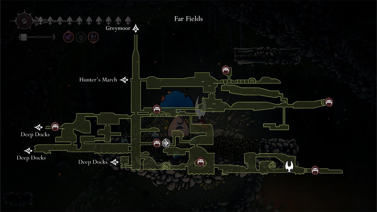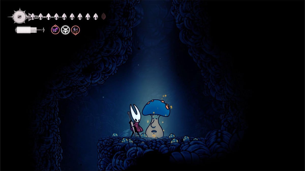 In Far Fields, head southeast to the platform east of the Seamstress’s house, near the Weavenest door. Jump between platforms until you spot the mushrooms and hear Mister Mushroom’s mumbling.