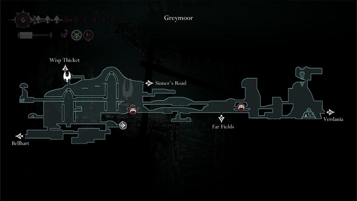 Mister Mushroom is north of the left tower of Greymoor, near the Wisp Thicket entrance. Use Clawline and Cling Grip to scale platforms and walls. After reaching the top, drop down to find his hiding spot.