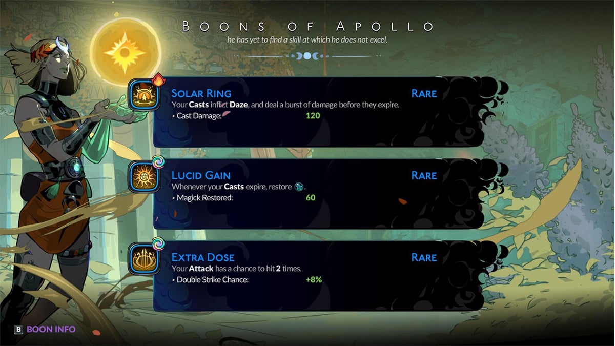 Each Olympian god’s Boons reflect their domain and playstyle: